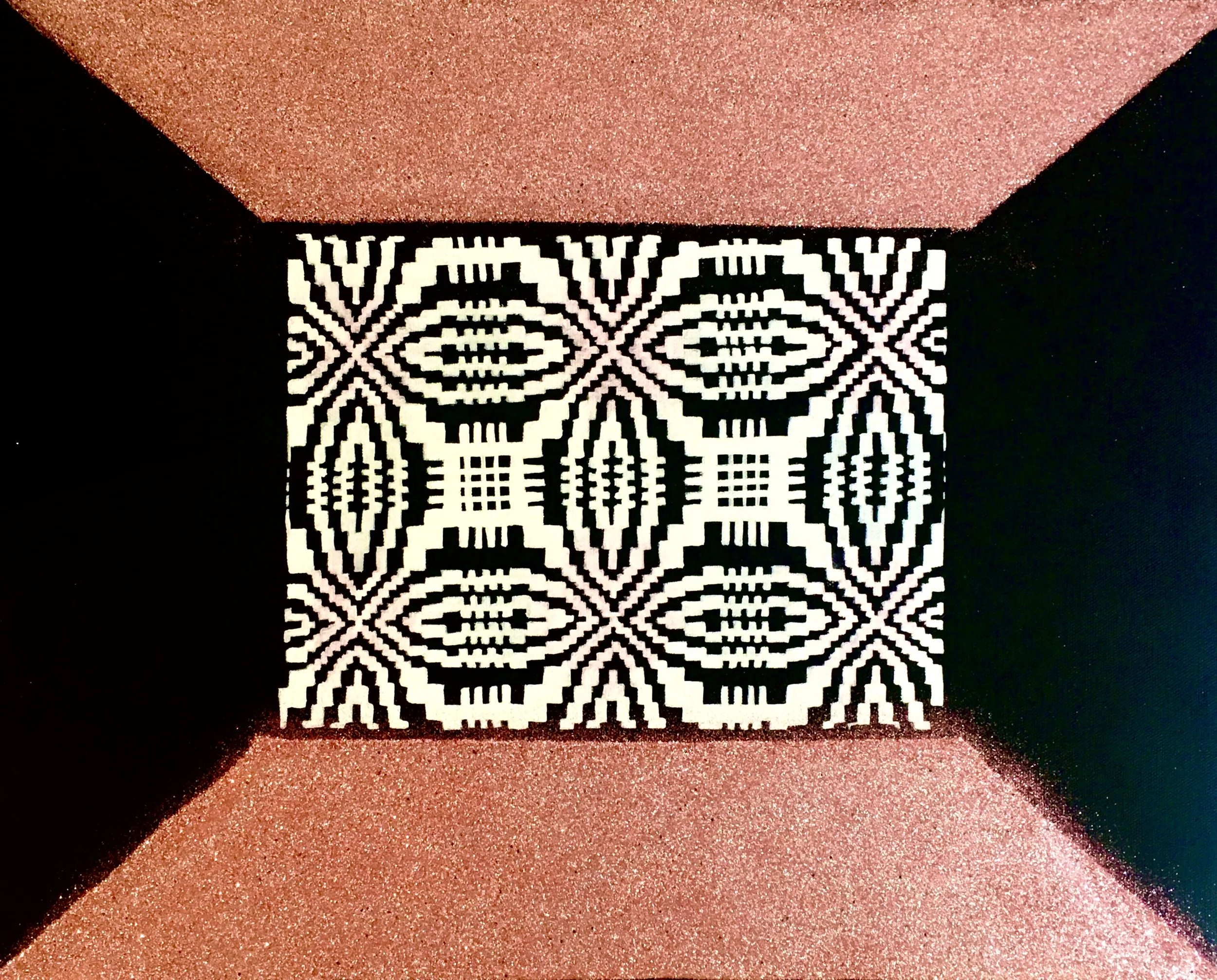 Krista Augius’s Mythical Codes series delves into the intersection of ancient symbolism, visual perception, and neuroscience. Rooted in Lithuanian folkloric patterns and echoing motifs from Vedic and pre-Columbian traditions, these works reimagine sacred geometries through a contemporary lens. Each composition employs optical illusions and rhythmic symmetry to engage the viewer’s eye in a continuous search for completion—activating alpha brainwave states associated with meditation and deep relaxation. In this way, Augius fuses cultural preservation with cognitive engagement, transforming symbolic language into a tool for visual and neurological immersion.